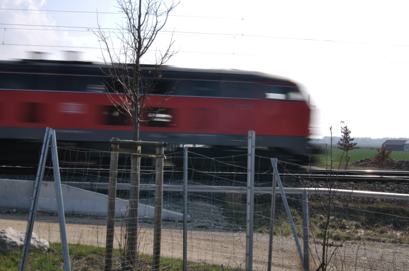 Belichtungszeit von 1/40 Sekunde. Die Bewegung des Zuges ist deutlich